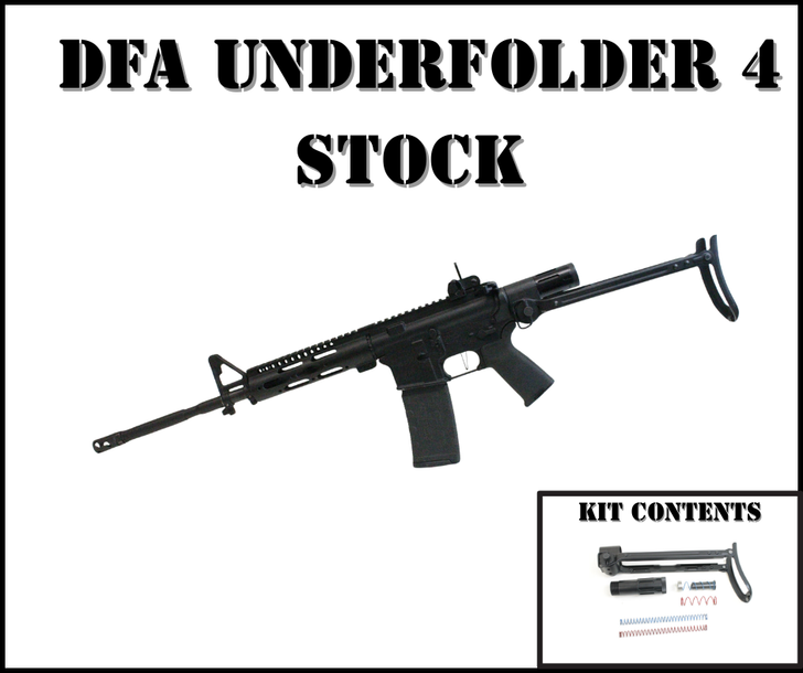 The DFA Underfolder 4" Rifle Stock utilizes our Modified Cycle System(MCS) and has a folded length of 3.9" off the back of the lower receiver.